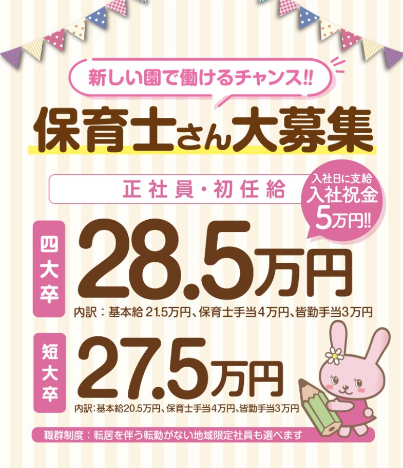 高水準の給与・綺麗な園舎の新しい環境で、